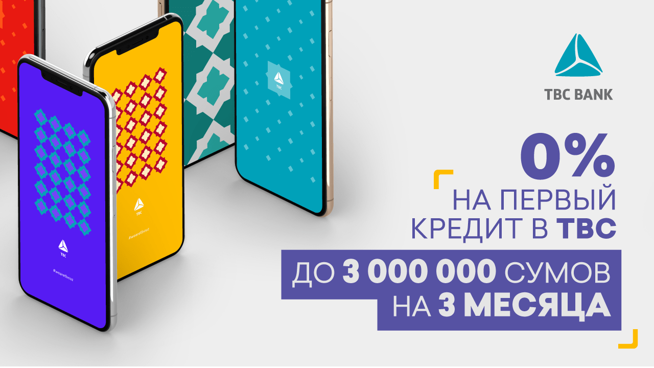 Только с 20 января по 20 февраля вы можете оформить свой первый TBC Кредит до 3 000 000 сумов на 3 месяца без процентов!